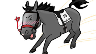 このレースもう一頭出走の芦毛トブガゴトクくんが途中で失速して心配したんですが、砂をかぶってやる気が無くなったようです(平地調教注意)